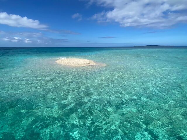 真っ白なサンゴのかけらが堆積してできており、満潮時には海中に沈み、干潮時にだけ姿を現します。