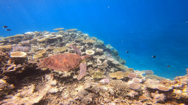 Snorkeling with sea turtles in the sea of Iriomote Island!