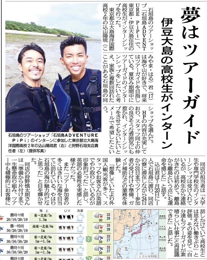 이즈오시마에서 이시가키섬으로! 고교생 인턴십의 도전이 신문기사에 게재되었습니다!
