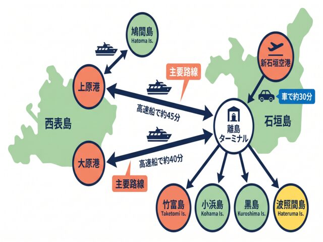 | 石垣島からの時間 | 約45〜55分 | 約40〜45分 |